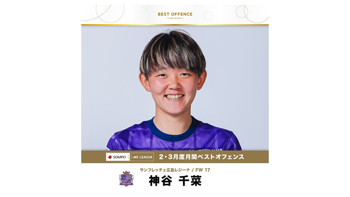 2・3月度 WEリーグ月間ベストオフェンス賞 決定 ~神谷 千菜 選手(サンフレッチェ広島レジーナ)が受賞~
