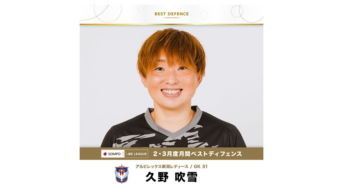 2・3月度 WEリーグ月間ベストディフェンス賞 決定 ~久野 吹雪 選手(アルビレックス新潟レディース)が受賞~