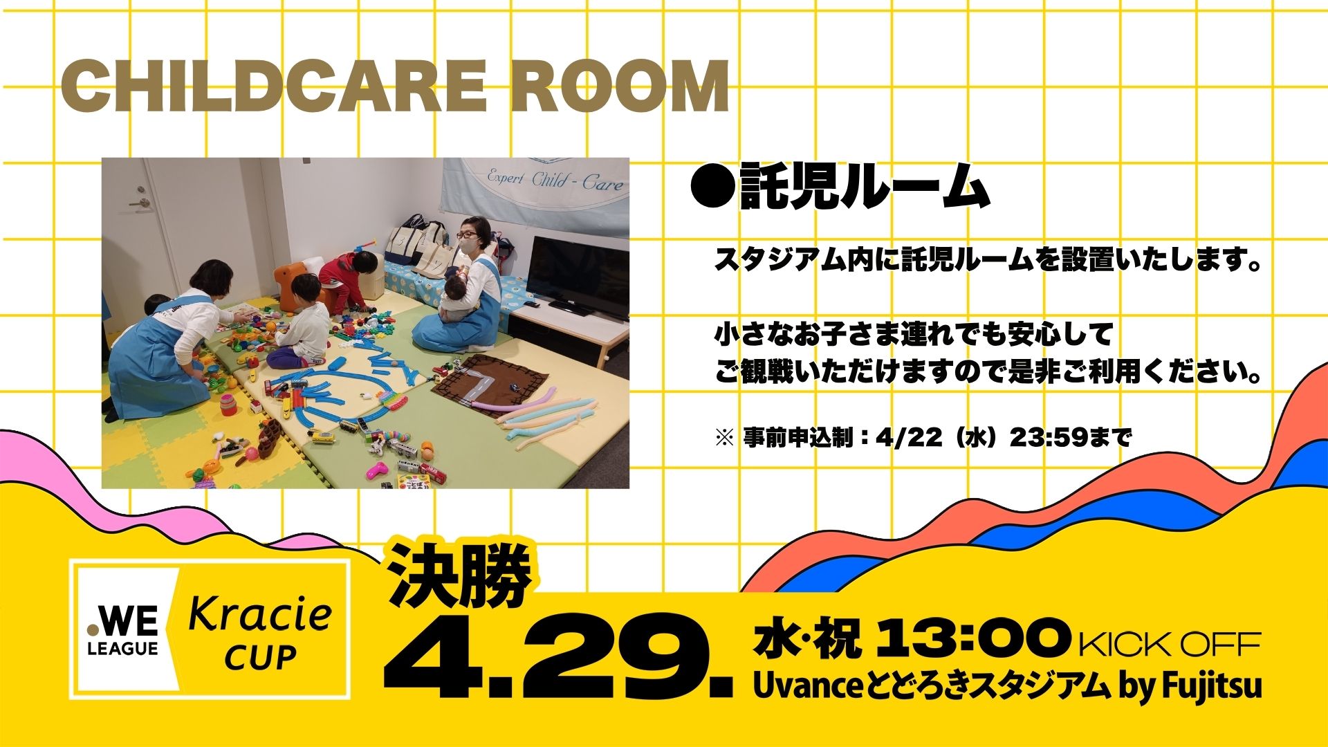 WEリーグでは、4月29日(水・祝)に開催される「2025/26 WEリーグ クラシエカップ決勝」において、託児ルームを設置いたします。